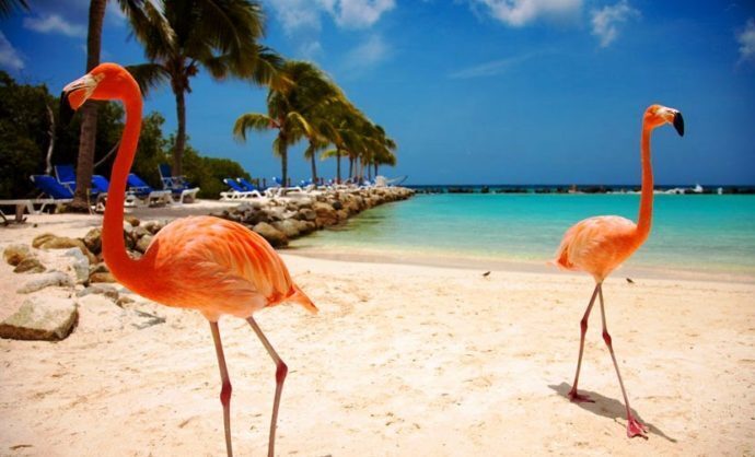 Аруба-с гулькин нос ,очень крошечный остров,равным образом название и государственного образования на юге Карибского моря. Это самый западный остров прибрежной Венесуэлы,который принадлежит Королевству Нидерланды.Площадь суши-180 км2. На этом,право слово,очень карликовом кусочке Земли есть приватный остров Ренессанс,где на пляже обитают розовые фламинго.Неотразимые и роскошные птицы почтенно разгуливают,вступая в тактильный контакт с ошеломлёнными туристами, вежливо принимая гостинцы из рук изумленных людей.