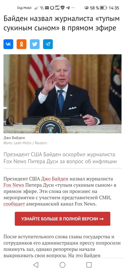 Материал называется "Байден назвал журналиста *тупымс укиным сыном* в прямом эфире", но фоточку таки откройте))))