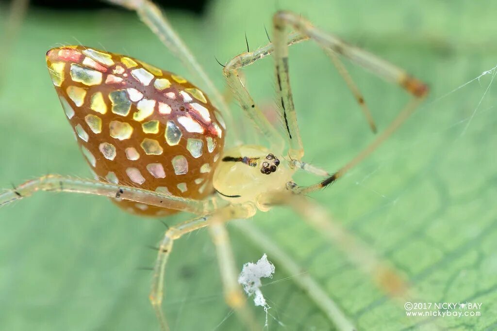 Странный и исключительно очаровательный паук с блестками на животе - обычное явление по всей Австралии. Это нетрудно заметить благодаря интеллектуальным серебристым пятнам в средней области, однако это сложно принять к сведению. В течение дня маленький паучок прячется, а ближе к вечеру собирает сети на подходящих деревьях.