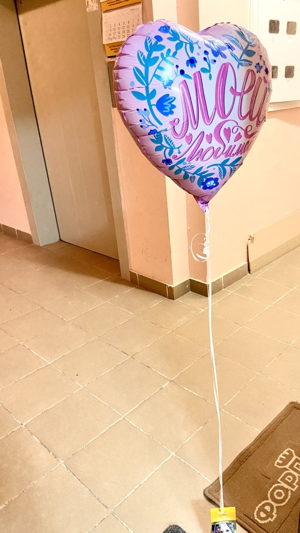 Муж ещё не вернулся с охоты, а в дверь позвонили. Мой пёс Майкл залаял, я направилась к двери. Посмотрела в глазок и, никого не увидев, открыла. Смотрю, никого нет. Лишь на ленте красивый шарик под потолком с признанием в любви: «Моей любимой» .