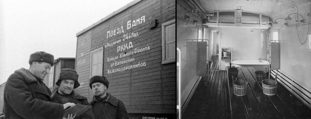 Во время Второй мировой войны СССР отправил около 100 поездов с банями с целью предотвращения распространения эпидемий. Они курсировали по самым разным маршрутам: например, 38-й дезинфекционный поезд “баня-прачечная”, построенный в Тюмени,"пробился" через Сталинград, Брест, Минск, Прагу, Варшаву и Берлин.