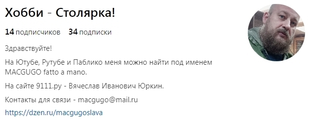 Немного отдышавшись, я зарегистрировал канал "Хобби - Столярка!". Рассказывать, о чем повествуется в публикациях на этом канале, не имеет смысла - ведь из названия и так все ясно. Но морально очень тяжело начинать заново. Тем более, разместить на новом канале старые публикации Дзен запрещает и приходится по крупицам восстанавливать свои позиции. Тема столярки на сайте 9111.ру не очень популярна, но все же, я уверен, найдется много людей кому интересны результаты моего труда, моего хобби и некоторые процессы хоббийного производства.