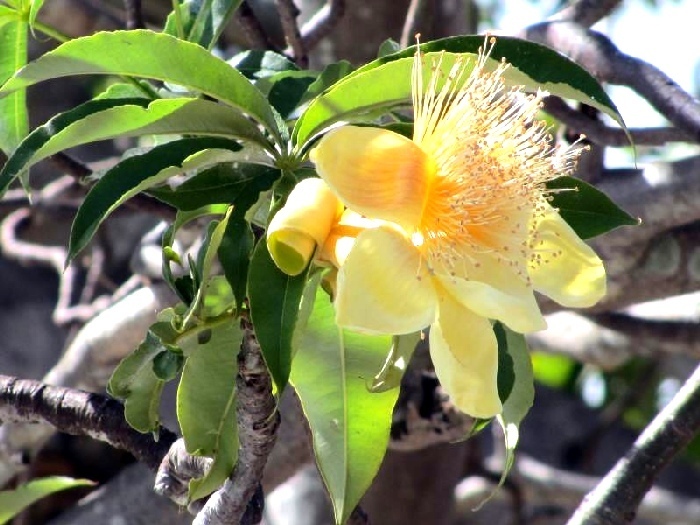 Это сегодня первый день зимы и даже ночью был небольшой морозец. А вчера в Краснодаре было 5 градусов тепла. И вот в последний день осени дерево расцвело. Надо сказать, что только на один день распускается цветок.