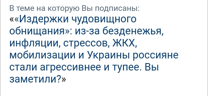 Автор у тебя мозга где в голове или там на чем ты сидишь? Нормальные россияне кто где одни исполняют долг в СВО перед нашими дедушками и бабушками фронтовиками ВОВ, другие "Тупые" умеют зарабатывать и работают они не плачут что они нищие! Кто не захотел работать он и будет работать, а сто грамм такую статью как этот автор что на скриншоте не лень писать разную ересь! Особенно если СИМка с российским номером, а сам автор данной статьи сидит и строчит где нибудь в Казахстане или в ЕС по методичка ЦИПСО или ещё по методичкам спецслужб ЕС! Ну возможно автор отрабатывает свой долг по кредиту так как ему кредит погасили иностранные спецслужбы!