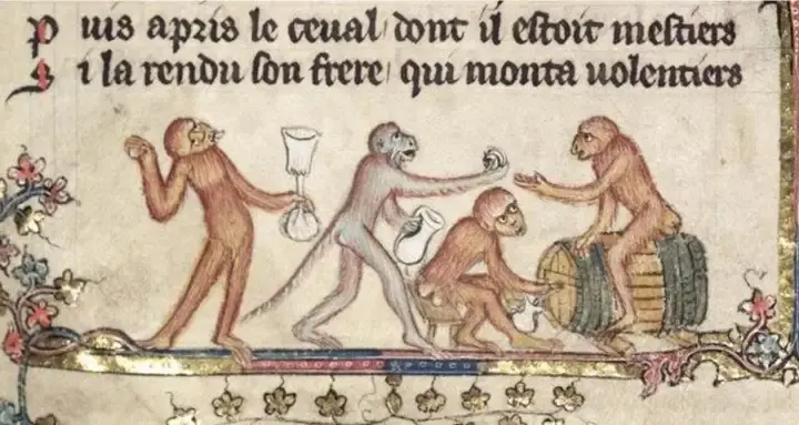 Первый - обезьяна пьяница; и он прыгает, и поет, и выдалбливает, и танцует для небес;