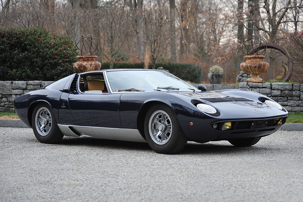 Легендарная машина всех времен Lamborghini Miura. Данная модель была произведена в далеком 1969 г. Один из величайших суперкаров всех времен с монструозным мотором w12. В данном автомобиле впервые была применена среднемоторная компоновка для суперкаров. Мощность данного автомобиля достигала фантастических по тем времена 375 лошадиных сил, а разгон осуществлялся до 240 км /ч. Стоимости данного автомобиля по разным оценкам могу доходить на автомобильных аукционах до трех миллионов долларов. Особое внимание занимает ее революционный, по тем временам, дизайн в виде выдвижных каплевидных фар, внутреннего интерьера и широкой волнообразной формы кузова.
