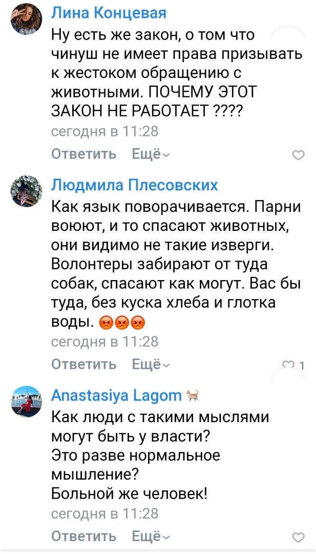 "Предлагаю воспитать этих собак для подрыва танков", — заявил чиновник.