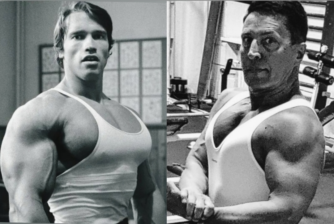 вспоминая киногероя Шварценеггера. Да, и я сам заметил, что стал приобретать формы Арнольда. Конечно, кто то скажет, что я не дотягиваю, но ребята, на этом фото, как и на других его фотках Арнольду 25-30 лет, а мне 65!