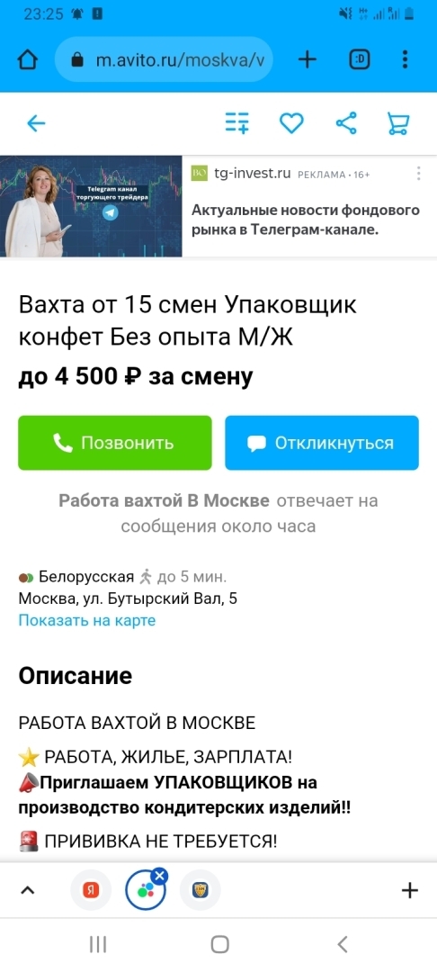 Скажите мне, пожалуйста, кто будет платить упаковщику 4500 руб. за смену, еще и без опыта? Такие объявления нужно сразу отметать. Вы приедете на вахту в Москву, в итоге вам скажут оплату в 2 раза меньше, т.к. нужно набраться опыта, а уже со следующей вахты будете получать заветные 4500 руб. Ехать вам некуда, и будете работать. Реально прикидывайте примерную оплату труда, а не фантазируйте.