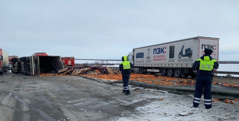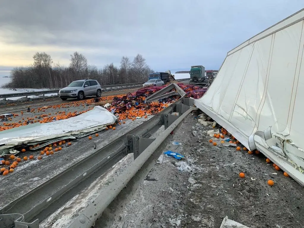 Грузовик мандаринов перевернулся на трассе Челябинск — Москва: все подробности, точные координаты