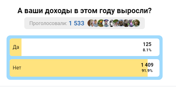 Вы не поняли уровень бедности действительно сократился-они стали еще богаче-санкции заморозили в западных банках 400 млр. долларов-вот их и пополнили наше бедное правительство.Теперь они не бедные-а мы нищие.Согласен Иван с тобой на все 100%.