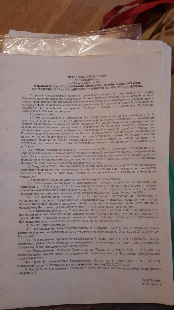 Документ от 2005 года, подписан Лужковым.О чём он должен говорить? В том году принят новый ЖК РФ.