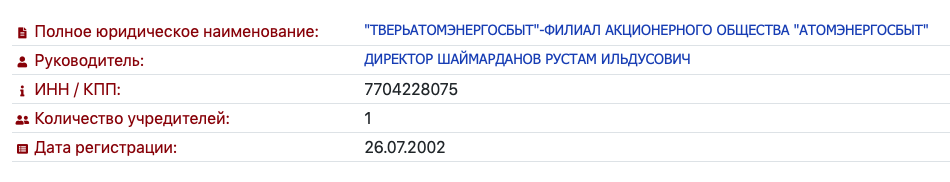 "Тверьатомэнергосбыт "зарегистрирован в Москве. За потреблённое электричество, выработанное на АЭС Удомля Тверской области, население Твери и Тверской области платит именно "Тверьатомэнергосбыт". Денежки ТЮ-ТЮ в Москву. В Тверском регионе ничего не остаётся! www.list-org.com