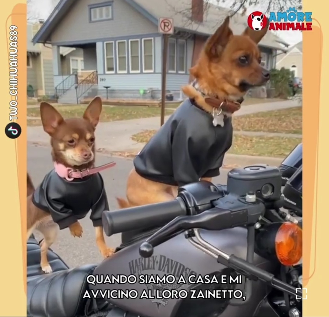 Эти великолепные и красивые чихуахуа нашли довольно любопытное увлечение, они любят кататься со своим хозяином на мотоцикле.