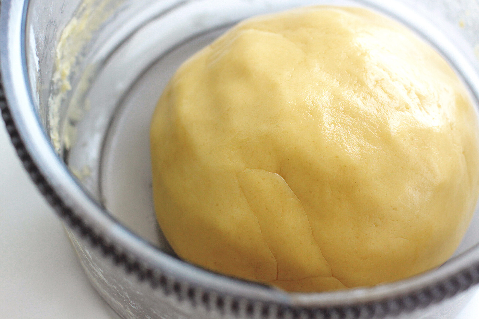 3. У вас должно получиться нелипкое, но все еще довольно мягкое тесто, которое держит форму. Скатайте его в шар и оставьте в холодильнике на 40 минут для охлаждения.
