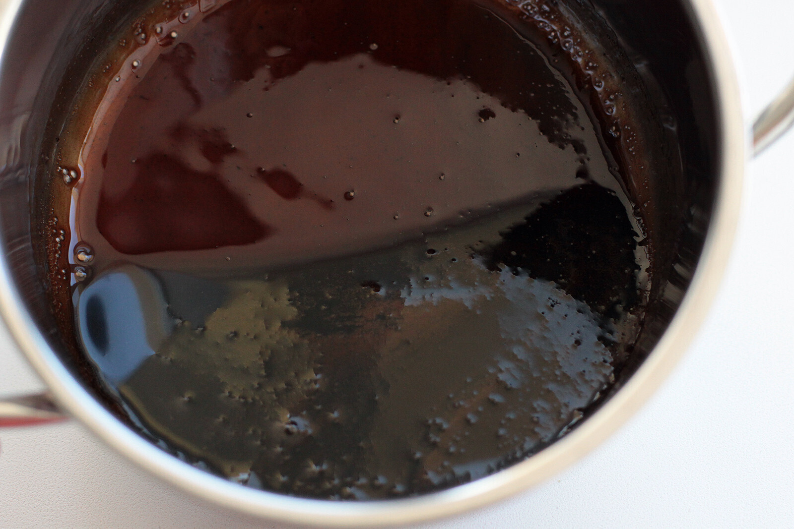 13. Последний шаг - украшение шляпок: добавьте какао-порошок и 1-2 столовые ложки воды в оставшийся сахарный сироп, перемешайте до получения однородной массы, тушите минуту или две и снимите с огня.