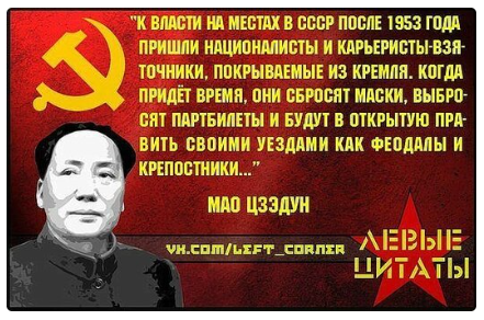Александр :"Тогда почему Китай без ВЗРЫВАНИЯ скоро станет ПЕРВОЙ ДЕРЖАВОЙ МИРА?" Да нет, не станет, хотя и разрешил частную собственность на средства производства, потому живёт и развивается. В своё время Мао предсказал будущее СССР (см. снимок), но невольно предсказал и будущее любой однопартийной системы. Если КНР будет трансформироваться в демократию, ну хотя бы по примеру Индии, тогда возможно и вырвется вперёд. "Это видимо у нас в крови". Скорее всего мы и дальше будем руководствоваться заветами потомкам, приписываемыми Петру Великому : "Я твердо верю, что государство Российское должно установить власть над всей Европой… Вы должны всегда расширяться в направлении Балтийского и Чёрного морей. Вы должны стараться приблизиться к Константинополю и Индии, продвинуться так далеко, как только возможно. Вы должны стремиться к господству на Чёрном море и стать хозяевами Балтийского. Это наиболее важно для наших будущих целей. Вы также должны сделать все возможное, чтобы спровоцировать распад Персии как можно скорее и открыть пути через Персидский залив" и т.д. Вот только развитие технологий сделало этот путь тупиковым и самоубийственным.
