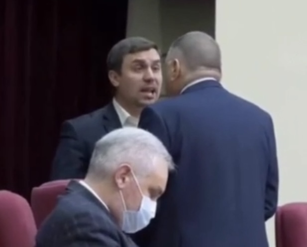 Но не тут то было! Николай Бондаренко соскочил со своего места и ринулся отстаивать свои права к обидчикам, требуя включить микрофон, чтобы закончить свою речь.
