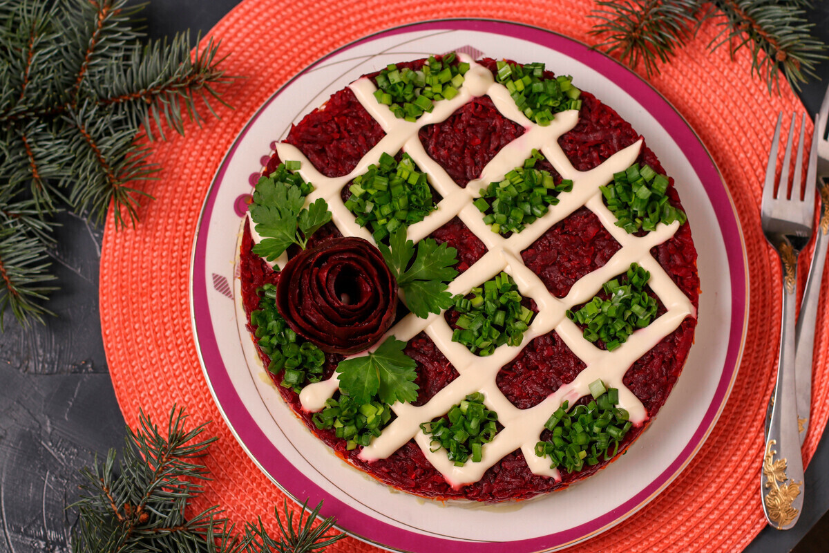 Русский праздничный стол славится классическими национальными салатами с майонезом. Давайте придадим современный и художественный оттенок некоторым из этих блюд и сделаем праздник еще более веселым и ярким.