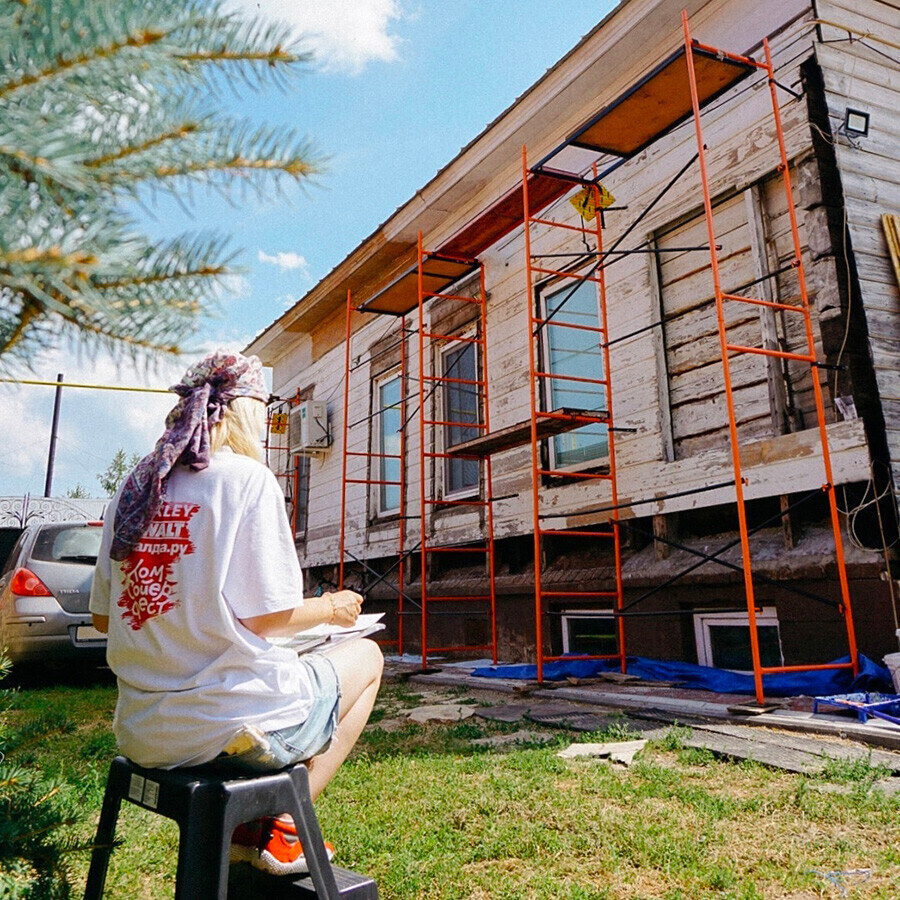 “У нас была удручающая ситуация: было много деревянных зданий, и все они разрушались”, - говорит Татьяна. “А потом Андрей вернулся с‘Форума живых городов’ в Ижевске с идеей, что мы могли бы пойти и покрасить их сами”.