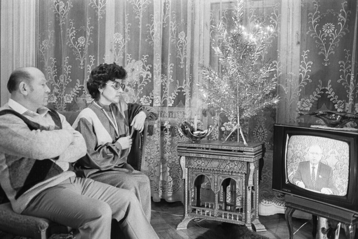 Начиная с 1970 года, без пяти минут полночь советское телевидение показывало обращение главы государства к нации, которое каждая семья смотрела, сидя за обеденным столом. Сначала это было больше похоже на ежегодное подведение итогов за год, но начиная с Михаила Горбачева это приняло форму новогодних поздравлений.
