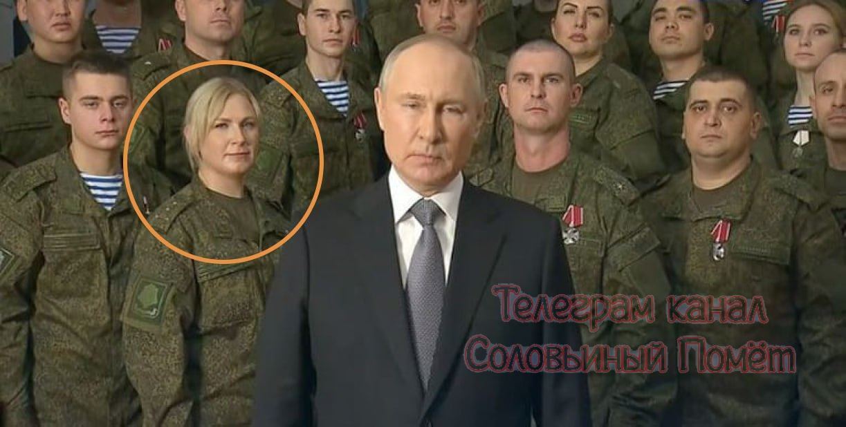 31 декабря 2022 года президент РФ Владимир Путин поздравил граждан РФ с наступающим 2023 годом. Многих россиян привлёк необычный формат поздравления: оно было сделано на фоне военнослужащих Южного военного округа, недалеко от зоны проведения СВО. Зрители обратили внимание на женщину — военнослужащую: оказалось, что она уже неоднократно появлялась рядом с Путиным. «Сибирь. Реалии»* отметило, что эта же женщина ранее была замечена рядом с президентом в храме, на рыболовецком судне и в монастыре. Впервые эта же женщина появилась рядом с Путиным в 2017 году: тогда она была «продавщицей мороженого».