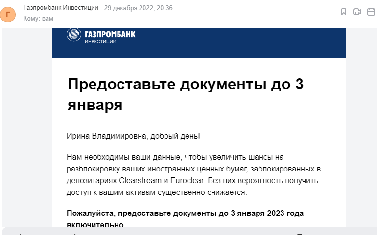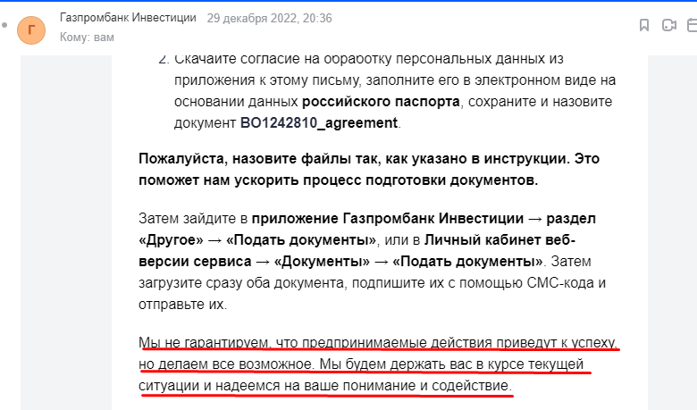 Важно ! Пишу из личного опыта : в ноябре 2022 г вложила в акции на сайтах банков (хорошо что небольшие суммы 3- 10.000 руб )Газпромбанк , Открытие и Альфа. Итог на сегодня ; Газпром акции не управляются брокерами, там идет все в минус , а в остальных , где под управлением колеблется + или - 5- 15 руб ! А перед Новым годом все эти банки прислали письмо , что все инвестиции замораживаются в связи с санкциями , т.к оказывается что не смотря на то что это Российские банки и я покупала акции только Российских компаний, но все денежные активы передаются в Брюссель. И банки хотели подать прошение туда а вывод активов , но для этого надо прислать копию своего загранпаспорта ( у меня он как раз просрочился) или копию Российского паспорта с английским переводом, заверенного у нотариуса. Все это никак не гарантировало размораживания активов . И после праздников пришел ответ от банка, что они подали прошение, но пока результата нет. И я думаю что вряд ли отменят санкции , тем более война только разгорается. Поэтому на данный момент это самые ненадежные вложения.