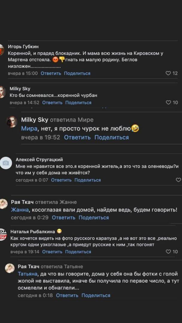 Во-вторых, в защиту тувинки: Тува - это регион России ! Не Казахстан, не Киргизия. Возможно ее родители или ее муж купили квартиру в Питере, не всё же тувинцам в тундре жить, современная молодежь сами решают где им жить и работать