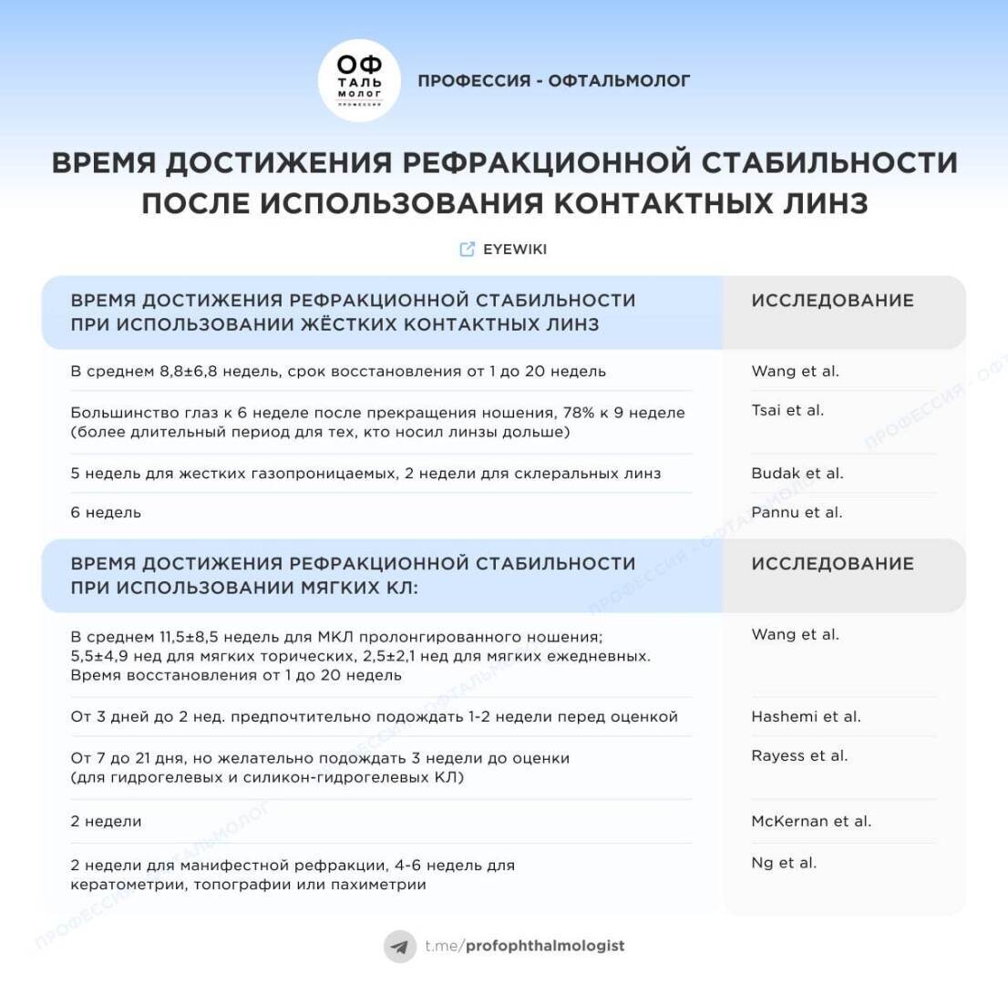 Время стабилизации рефракции после ношения контактных линз может варьироваться в широких пределах.