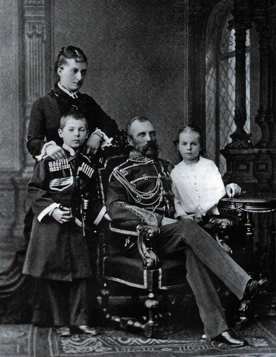 Царь Александр II, герцогиня Екатерина Долгорукова и их дети Георгий и Ольга.