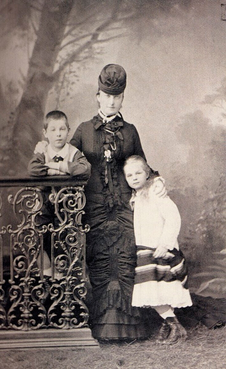 Екатерина Михайловна Юрьевская (Долгорукова) с сыном Георгием и дочерью Ольгой. 1881-1883.