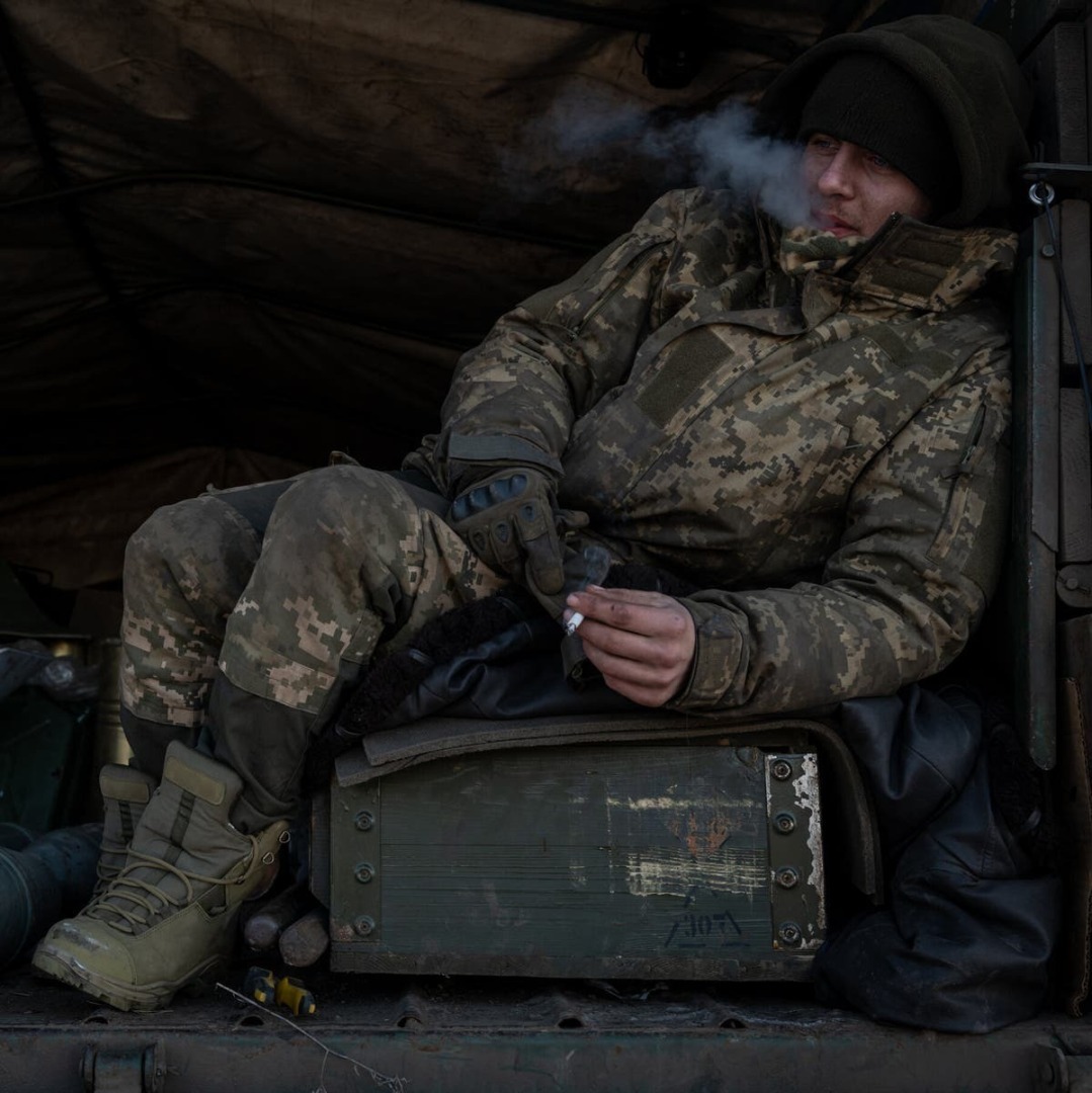 Украинский солдат из 59-й механизированной бригады в понедельник ожидает приказа открыть артиллерийский огонь по Пескам.Кредит...Николь Танг для The New York Times