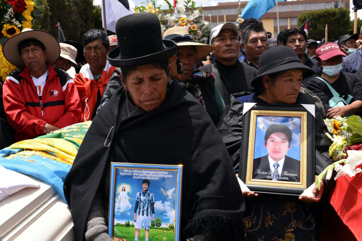 «Кровопролитие никогда не будет забыто», — кричали некоторые, неся черные флаги, на марше в районе, граничащем с Боливией и ставшим центром недавних протестов.