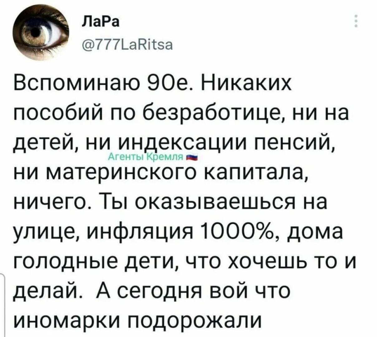Я сейчас не буду трогать пенсионеров, которые оказались заложниками ситуации на стыке развала одной страны и формирования другой. Многие из них просто до сих пор не понимают, что правила поменялись, а поэтому ждут и требуют того, что, по их мнению, является достойной пенсией. По факту пенсия – это процент выплаты взамен утраченного дохода, и никто никому не говорил, что выйдя на пенсию вдруг разбогатеют.