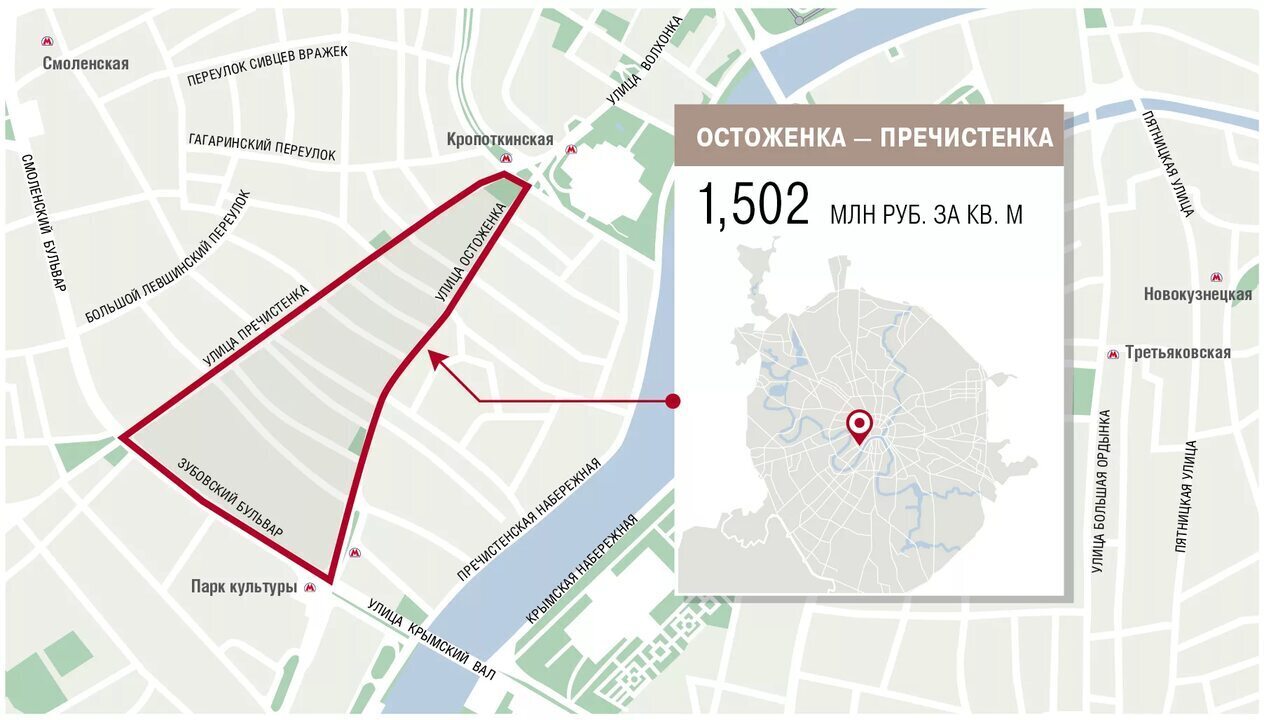 Сейчас - так называемая "золотая миля" между станциями метро Кропоткинская и Парк Культуры