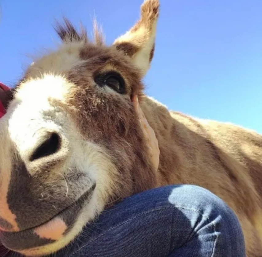 Ангус, без сомнения, самый милый ослик в мире, он любит обниматься, дарить и получать много поцелуев.