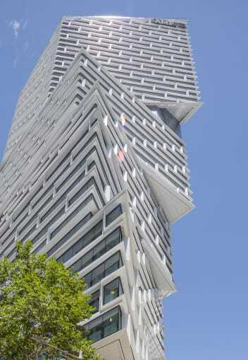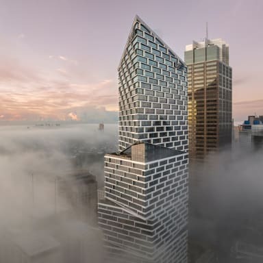 Поразительный дизайн 3XN, который является частью более масштабного проекта реконструкции стоимостью 1 миллиард австралийских долларов (670 миллионов долларов), включает в себя пять сложенных друг на друга томов, которые закручиваются к небу. Описанная архитекторами как "вертикальная деревня", Quay Quarter Tower включает в себя торговые площади и офисы с видом на Сиднейский оперный театр, а также ряд террас на крыше.
