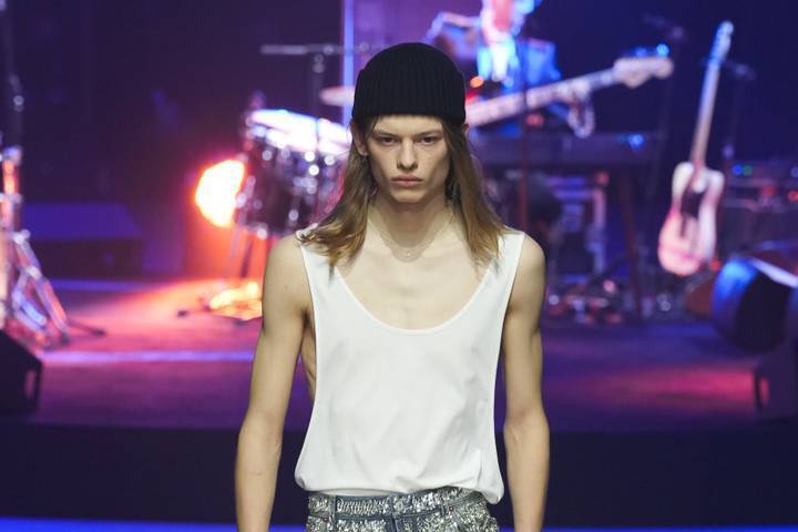 Когда воздух наполнился звуками бас-гитары и вокала, модели начали выходить в тот момент, когда буквально и фигурально лишил дом его недавнего прошлого, порвав с орнаментом и поэтическим стилем, которые стали синонимом эстетики Микеле. Мультисенсорные, красочные и бесполые выражения исчезли, уступив место томному, хотя и более трезвому силуэту.