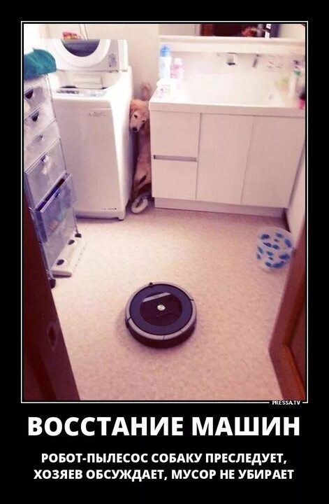 А ещё роботы-пылесосы могут быть вредителями, как этот, на прикреплённом фото: навредил и заглох, а рекламе говорили, что у него искусственный интеллект очень высок