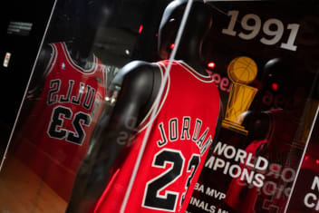 Джордан был в футболке "Чикаго Буллз" в первом матче финала НБА 1998 года, кульминации знаменитого сезона, известного как "Последний танец", который был показан в одноименном документальном сериале ESPN и Netflix 2020 года. 3 Июня 1998 года Джордан надел майку на матч против "Юты Джаз", набрав 33 очка за 45 минут после поражения "Буллз"."Буллз" продолжили выигрывать чемпионат, несмотря на серьезные внутренние разногласия, которые повлияли на их сезон, а Джордан завоевал свой шестой кольцо победителей НБА.