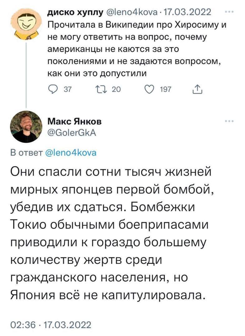 В истории было много примеров, чем заканчиваются крупные конфликты, один из которых действия США в Японии, где было уничтожено очень много мирных жителей.