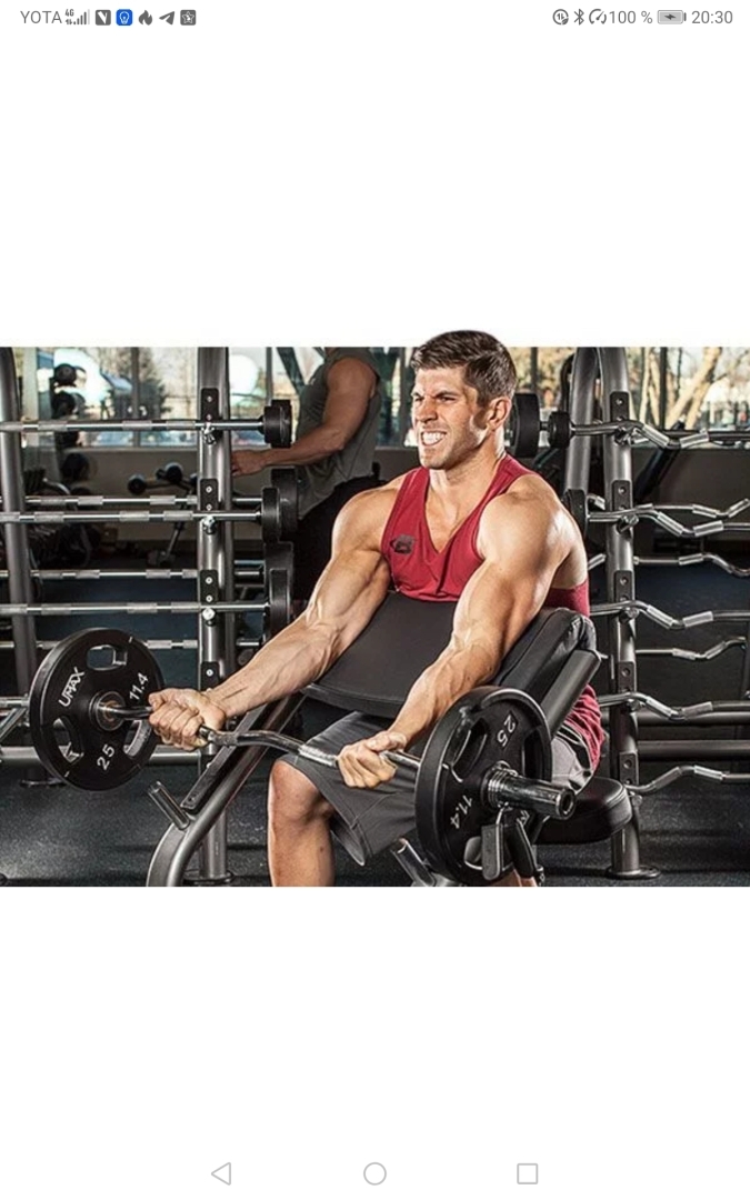 1️⃣ Подъём штанги на бицепс на скамье Лари Скота 6×12,10,8,6,4,2