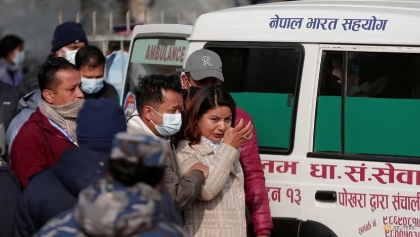 Члены семьи оплакивают смерть жертвы авиакатастрофы самолета авиакомпании Yeti Airlines в Покхаре, Непал, 17 января 2023 года.