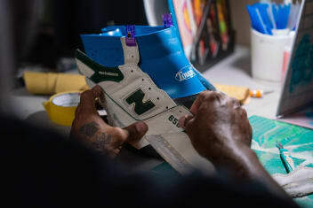Флойд, сам себя называющий давним "сникерхедом". имел предыдущий опыт в разработке и модификации обуви. Он посетил четырехдневную интенсивную программу под названием SRGN Academy Обувного хирурга, чтобы научиться разбирать и реконструировать популярные кроссовки.