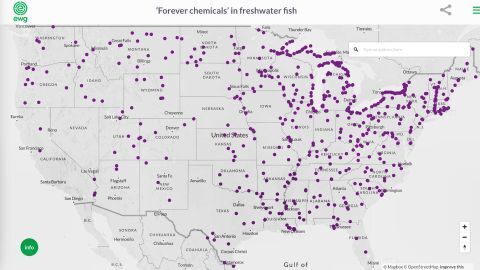 Рыба, пойманная в пресных водах национальных ручьев и рек, а также в Великих озерах, содержит опасно высокие уровни ПФОС, сокращенно от перфтороктановой сульфоновой кислоты, известного синтетического токсина, поэтапно запрещенного федеральным правительством . Агентство защиты.
