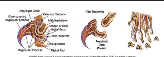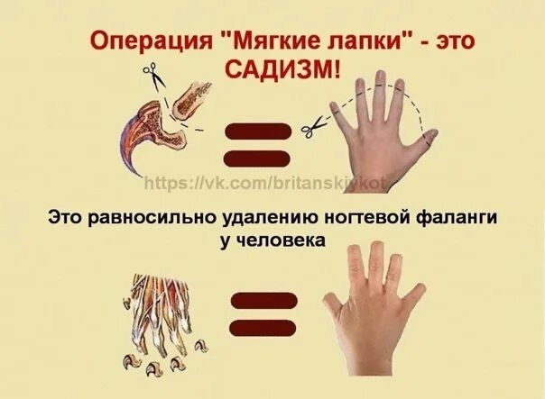 Чтобы вам было попонятней, это все равно, как если бы вам, каждый палец укоротить на две фаланги. А что, представляете какая экономия на маникюре? А есть клиники, которые сильно не заморачиваются, и удаляют коготь просто вместе с подушечкой, фактически делая из животного инвалида. Я понимаю, ветеринары не дают клятву Гиппократа, но насколько нужно быть жестокими , чтобы в погоне за баблом просто калечить животных?