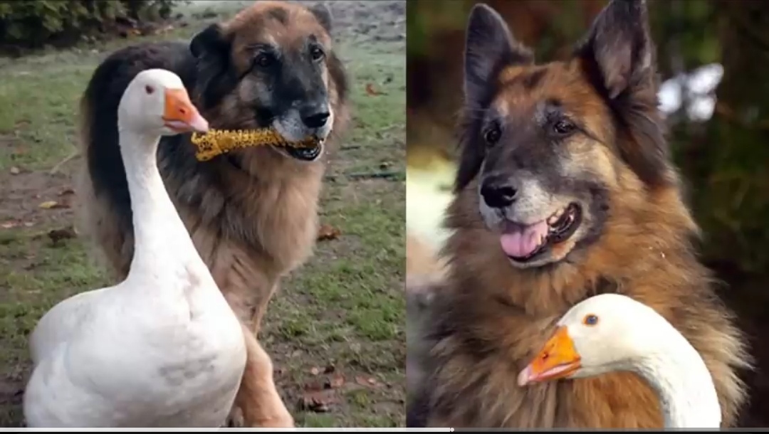 Удивительная история.... Гусь решил поесть из чашки злой овчарки! Люди уже попрощались с пернатым!