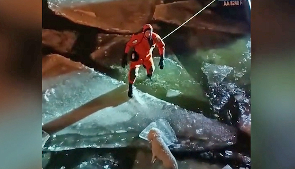"Специалист в гидрокостюме добрался до льдины, на которой сидел пес. На воздушной подушке Альфа доставили на берег и передали хозяевам."