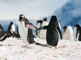 Хотя они и птицы, у пингвинов вместо крыльев есть ласты. Они не могут летать, а по земле ходят вперевалку, хотя при подходящих снежных условиях они будут скользить на животе. В воде они опытные пловцы и ныряльщики, а некоторые виды могут развивать скорость до 15 миль в час. Отличительная окраска пингвина — черное тело с белым животом — помогает птице маскироваться в воде, когда она ищет пищу из мелких креветок, рыбы, крабов и кальмаров.