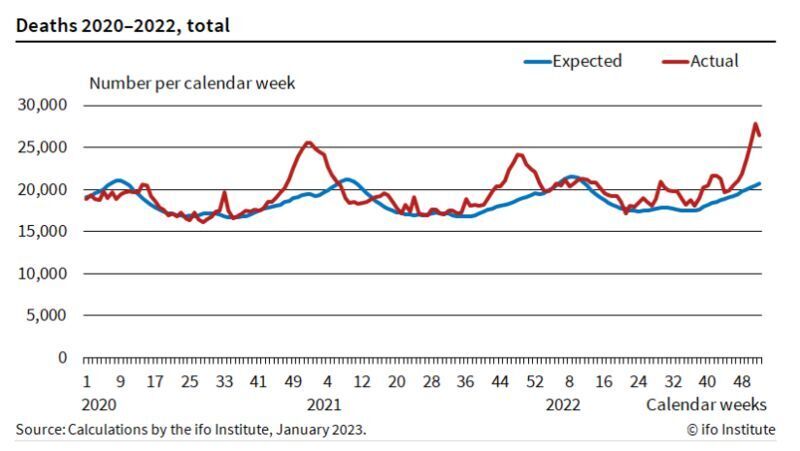 Согласно подсчетам, опубликованным Институтом ifo в пятницу, за три года пандемии Covid-19 в Германии умерло примерно на 180 000 человек больше, чем можно было бы ожидать.